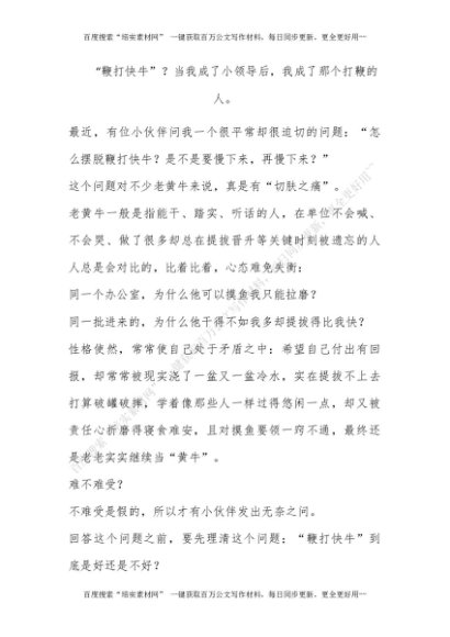 “鞭打快牛”?当我成了小领导后,我成了那个打鞭的人。[更多资源请百度搜索“培实素材网”]