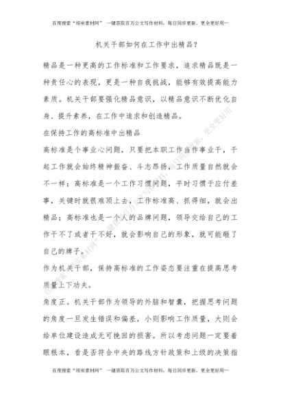 机关干部如何在工作中出精品?[更多资源请百度搜索“培实素材网”]