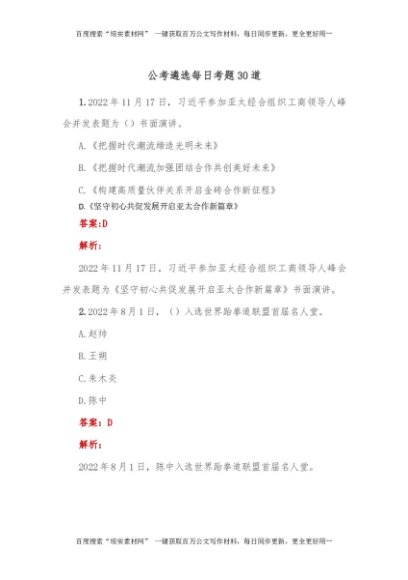 公考遴选每日考题30道[更多资源请百度搜索“培实素材网”]