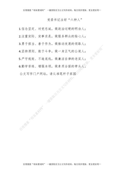 党委书记当好“六种人”[更多资源请百度搜索“培实素材网”]