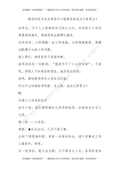 哪些时机节点向领导开口提要求的成功几率更大?[更多资源请百度搜索“培实素材网”]