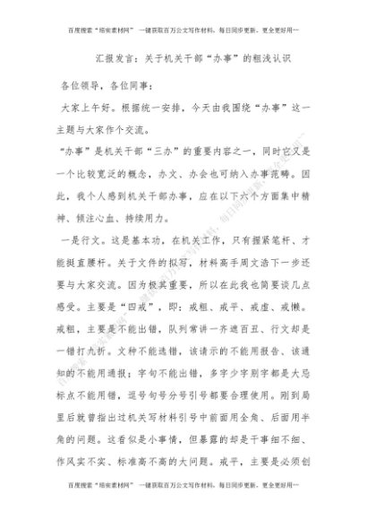 汇报发言:关于机关干部“办事”的粗浅认识[更多资源请百度搜索“培实素材网”]