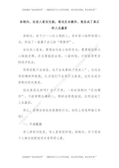 体制内,这些人看似无能,通过反向操作,竟活成了真正的人生赢家[更多资源请百度搜索“培实素材网”]