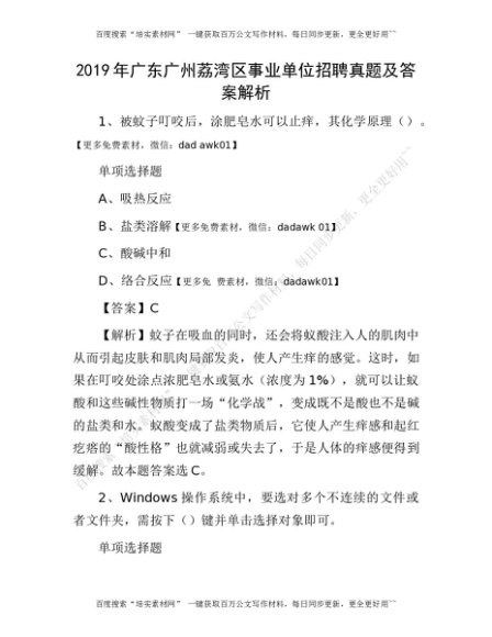 2019年广东广州荔湾区事业单位招聘真题及答案解析[更多资源请百度搜索“培实素材网”]