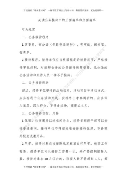 必读!公务接待中的正面清单和负面清单[更多资源请百度搜索“培实素材网”]
