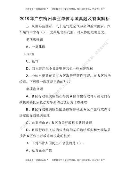 2018年广东梅州事业单位考试真题及答案解析[更多资源请百度搜索“培实素材网”]