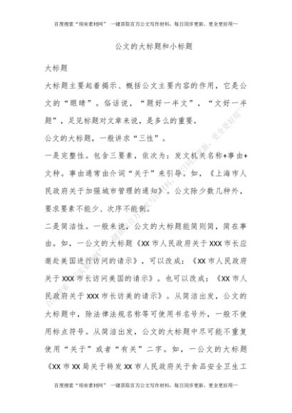 公文的大标题和小标题[更多资源请百度搜索“培实素材网”]