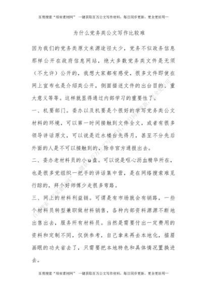 为什么党务类公文写作比较难[更多资源请百度搜索“培实素材网”]