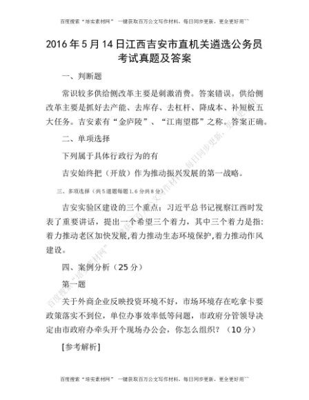 2016年5月14日江西吉安市直机关遴选公务员考试真题及答案[更多资源请百度搜索“培实素材网”]