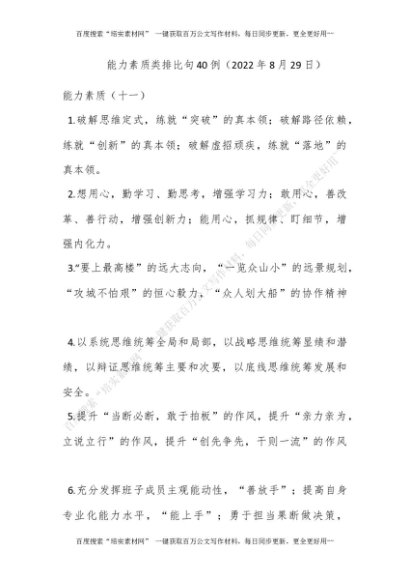 能力素质类排比句40例(2022年8月29日)[更多资源请百度搜索“培实素材网”]