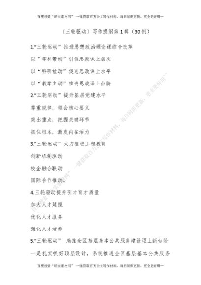 〔三轮驱动〕写作提纲第1辑(30例)[更多资源请百度搜索“培实素材网”]