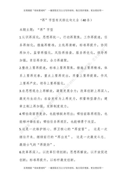 “再”字型有关排比句大全(40条)[更多资源请百度搜索“培实素材网”]