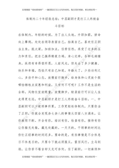 体制内二十年经验总结:中层副职才是打工人终极奋斗目标[更多资源请百度搜索“培实素材网”]