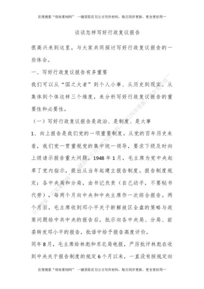 谈谈怎样写好行政复议报告[更多资源请百度搜索“培实素材网”]
