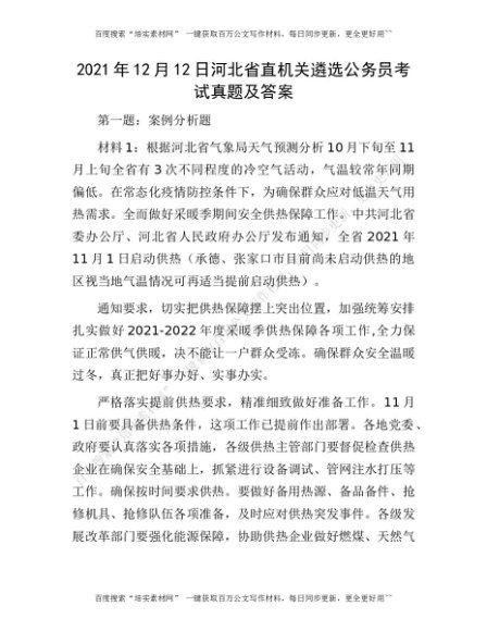 2021年12月12日河北省直机关遴选公务员考试真题及答案[更多资源请百度搜索“培实素材网”]