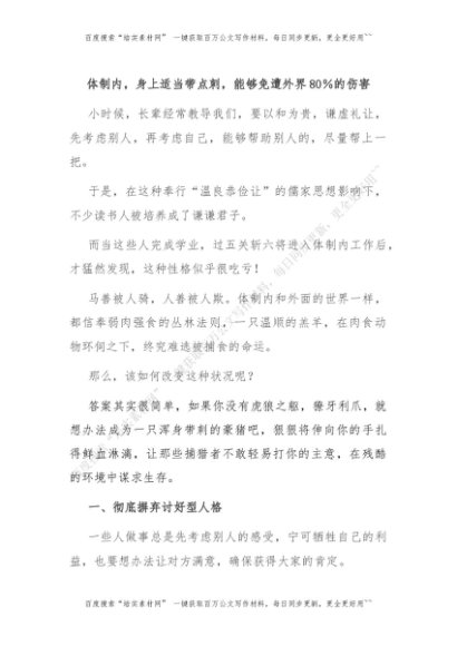 体制内,身上适当带点刺,能够免遭外界80%的伤害[更多资源请百度搜索“培实素材网”]
