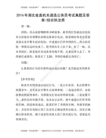 2016年湖北省直机关遴选公务员考试真题及答案-综合执法类[更多资源请百度搜索“培实素材网”]