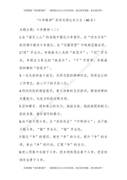 “斗争精神”类有关排比句大全(40条)[更多资源请百度搜索“培实素材网”]