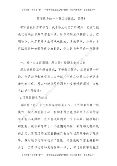 领导很少给一个员工安排活,是好?[更多资源请百度搜索“培实素材网”]