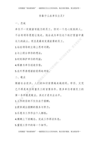 你靠什么在单位立足?[更多资源请百度搜索“培实素材网”]