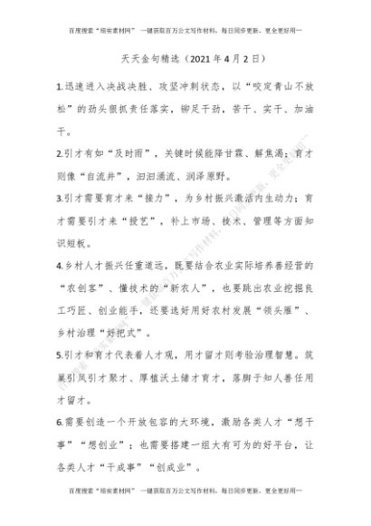 天天金句精选(2021年4月2日)[更多资源请百度搜索“培实素材网”]