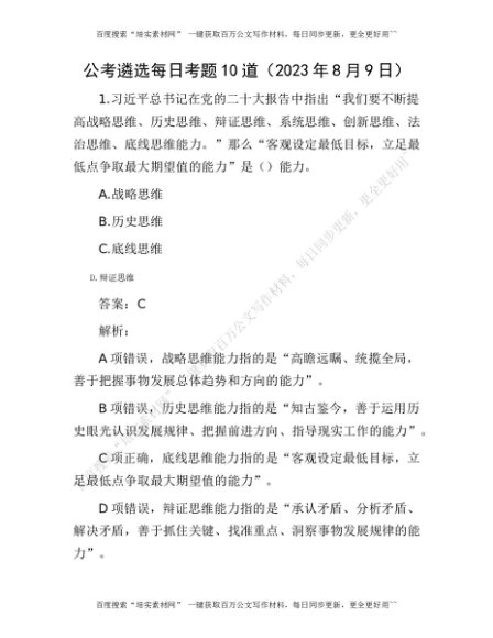 公考遴选每日考题10道(2023年8月9日)[更多资源请百度搜索“培实素材网”]