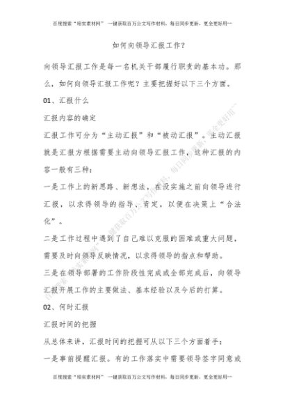 如何向领导汇报工作?[更多资源请百度搜索“培实素材网”]
