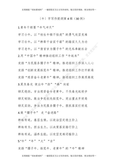 〔牛〕字写作提纲第4辑(30例)[更多资源请百度搜索“培实素材网”]