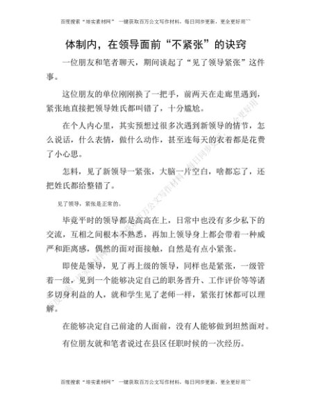 体制内,在领导面前“不紧张”的诀窍[更多资源请百度搜索“培实素材网”]