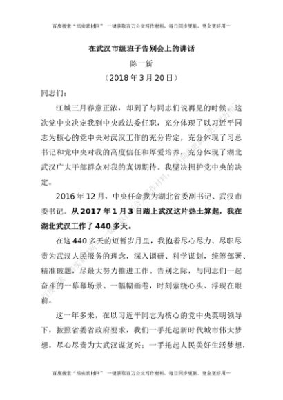 在武汉市级班子告别会上的讲话【陈一新】[更多资源请百度搜索“培实素材网”]