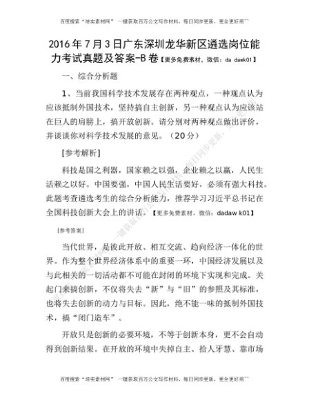 2016年7月3日广东深圳龙华新区遴选岗位能力考试真题及答案-B卷[更多资源请百度搜索“培实素材网”]