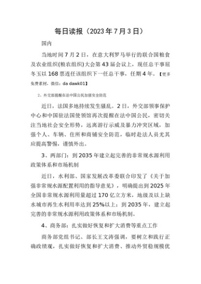 每日读报(2023年7月3日)[更多资源请百度搜索“培实素材网”]