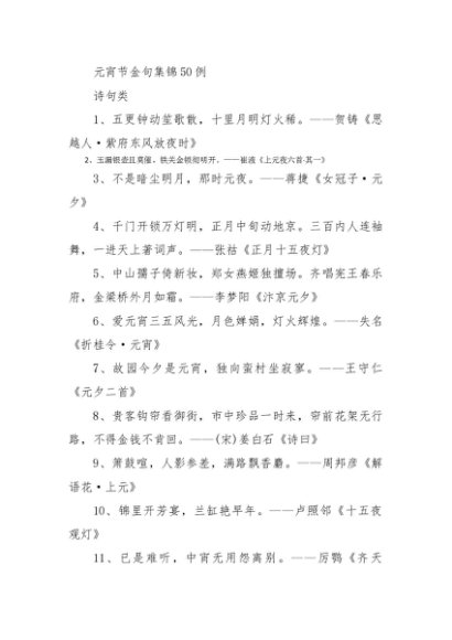 元宵节金句集锦50例[更多资源请百度搜索“培实素材网”]