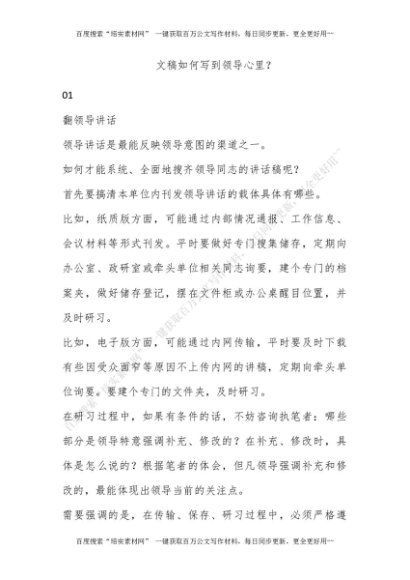 文稿如何写到领导心里?[更多资源请百度搜索“培实素材网”]