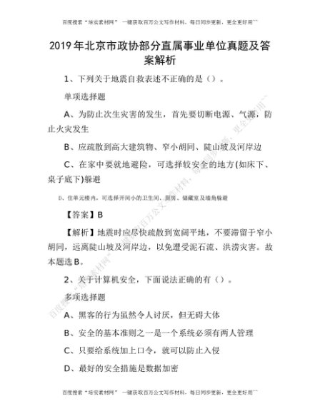 2019年北京市政协部分直属事业单位真题及答案解析[更多资源请百度搜索“培实素材网”]