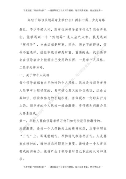 年轻干部该从领导身上学什么?两条心得,少走弯路![更多资源请百度搜索“培实素材网”]