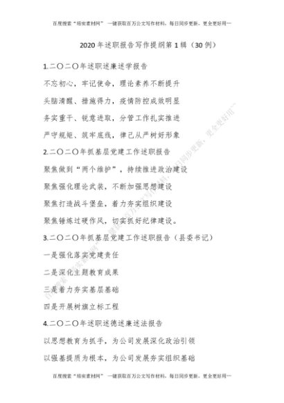 2020年述职报告写作提纲第1辑(30例)[更多资源请百度搜索“培实素材网”]