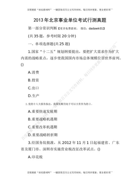 2013年北京事业单位考试行测真题[更多资源请百度搜索“培实素材网”]