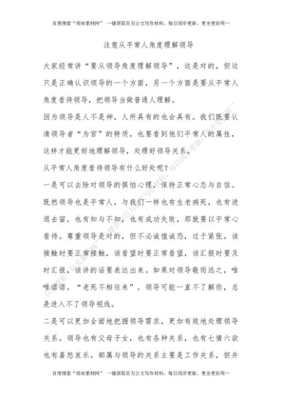 注意从平常人角度理解领导[更多资源请百度搜索“培实素材网”]