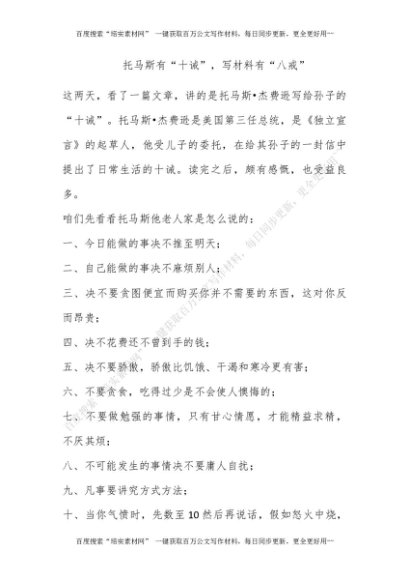 托马斯有“十诫”,写材料有“八戒”[更多资源请百度搜索“培实素材网”]