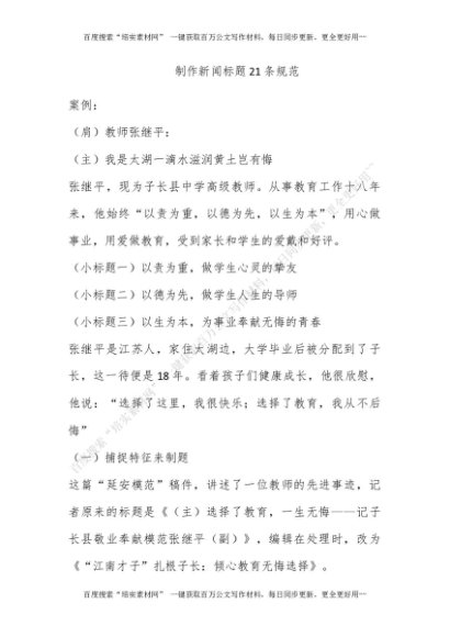 制作新闻标题21条规范[更多资源请百度搜索“培实素材网”]