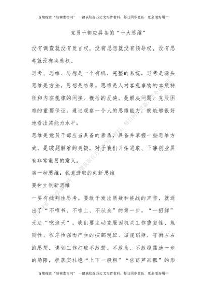 党员干部应具备的“十大思维”[更多资源请百度搜索“培实素材网”]