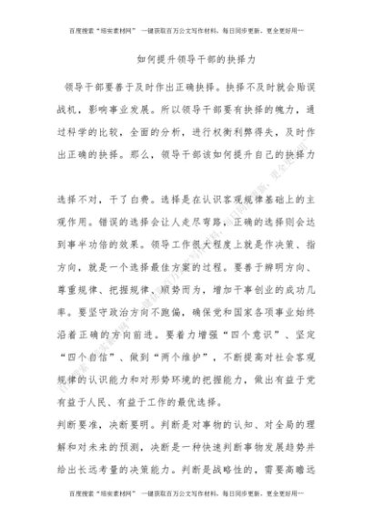如何提升领导干部的抉择力[更多资源请百度搜索“培实素材网”]