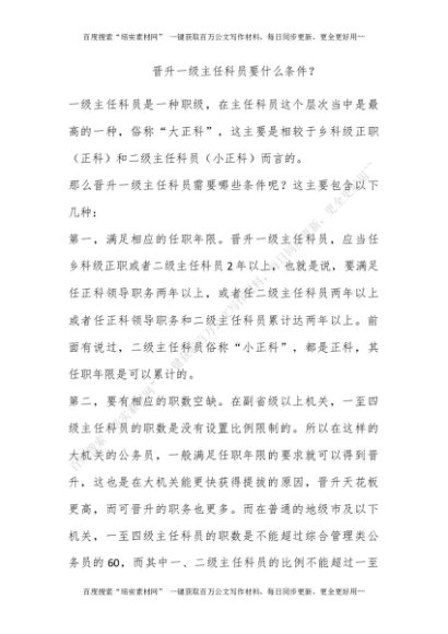 晋升一级主任科员要什么条件?[更多资源请百度搜索“培实素材网”]