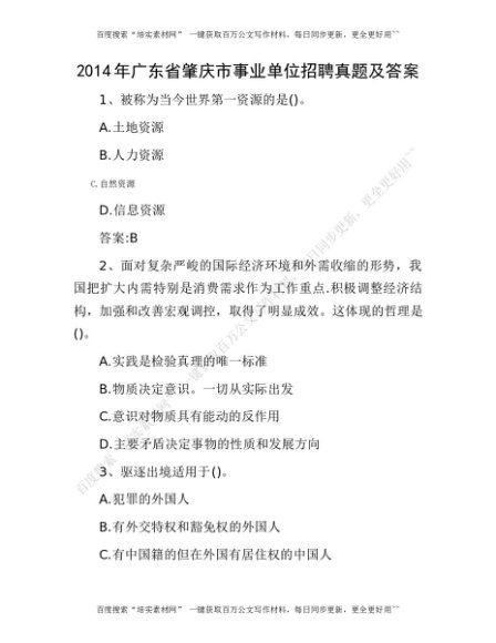 公考遴选-2014年广东省肇庆市事业单位招聘真题及答案[更多资源请百度搜索“培实素材网”]