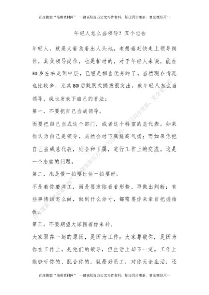 年轻人怎么当领导?五个忠告![更多资源请百度搜索“培实素材网”]
