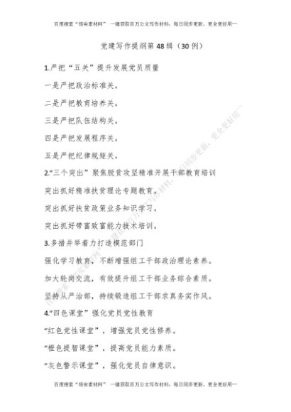 党建写作提纲第48辑(30例)[更多资源请百度搜索“培实素材网”]