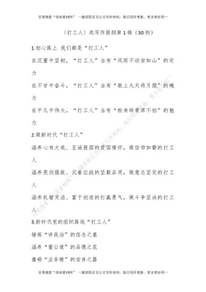 〔打工人〕类写作提纲第1辑(30例)[更多资源请百度搜索“培实素材网”]