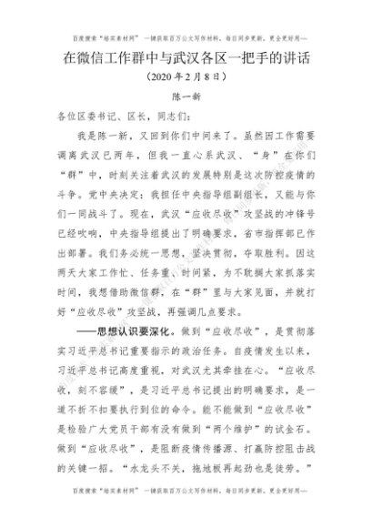 陈一新:在微信工作群中与武汉各区一把手的讲话[更多资源请百度搜索“培实素材网”]