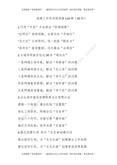 党建工作写作提纲第110辑(30例)[更多资源请百度搜索“培实素材网”]